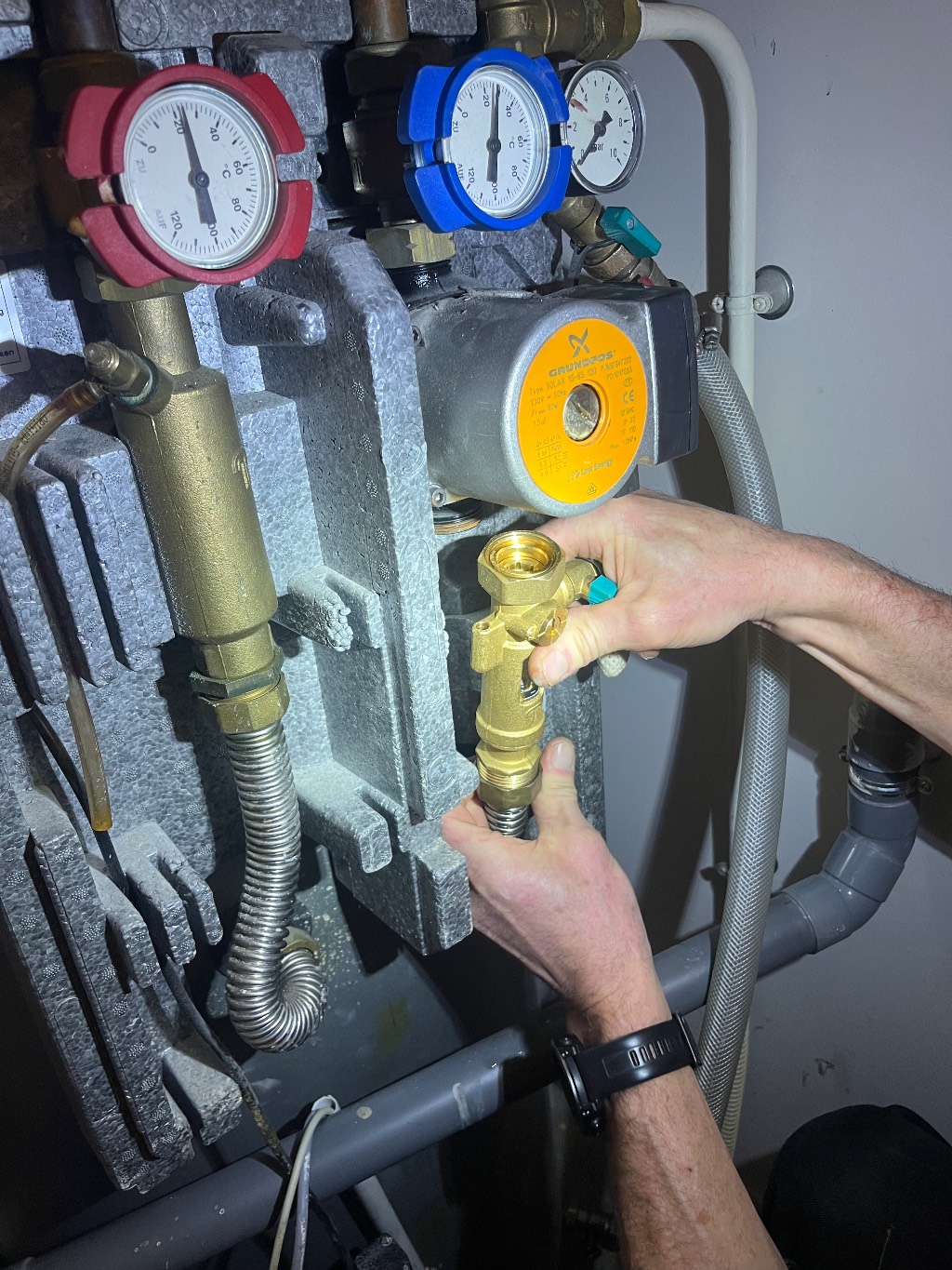 En particulier, nous avons constaté 2 fuites sur le circuit solaire :